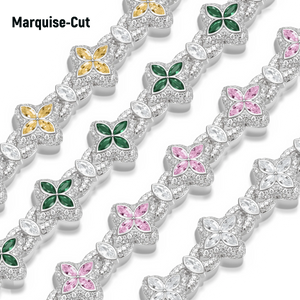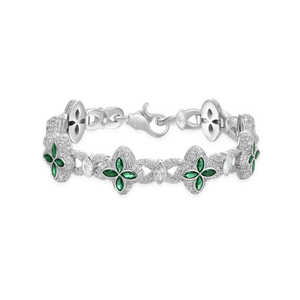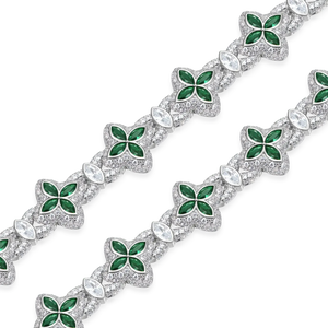 Elevate your jewelry collection with this refined clover-link bracelet, crafted to embody elegance and modern sophistication. Each clover motif is adorned with rich emerald-green marquise stones, perfectly complemented by handset high-quality moissanite diamonds that add a radiant sparkle. The premium silver finish enhances its luxurious appeal, while the smooth, secure clasp ensures all-day comfort.