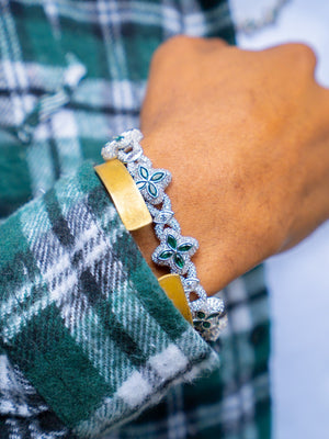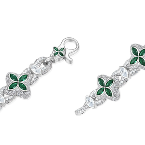 Luxury Clover-Link Bracelet Emerald Green Accents & Moissanite Detailing