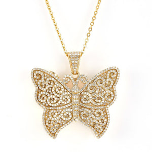This stunning butterfly pendant is crafted in a premium gold-plated finish and designed with intricate detailing that adds a luxurious touch. The pendant features sparkling Lab Diamod stones arranged beautifully across the butterfly wings, creating a radiant shine from every angle. Its elegant swirl pattern gives it a unique and eye-catching appearance, making it perfect for both daily wear and special occasions. The lightweight design ensures comfortable wear, while the durable chain adds long-lasting strength. This necklace is ideal for women who love premium, trendy, and stylish jewellery. Perfect as a gift for birthdays, anniversaries, or festive celebrations.